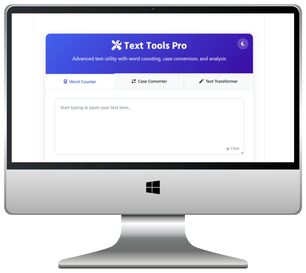 Text Tools is an all-in-one text utility designed for fast writing and editing. Easily count words and characters, convert text case, and transform content in seconds. Paste or type your text to analyze, clean, and optimize it quickly with a simple, modern interface.